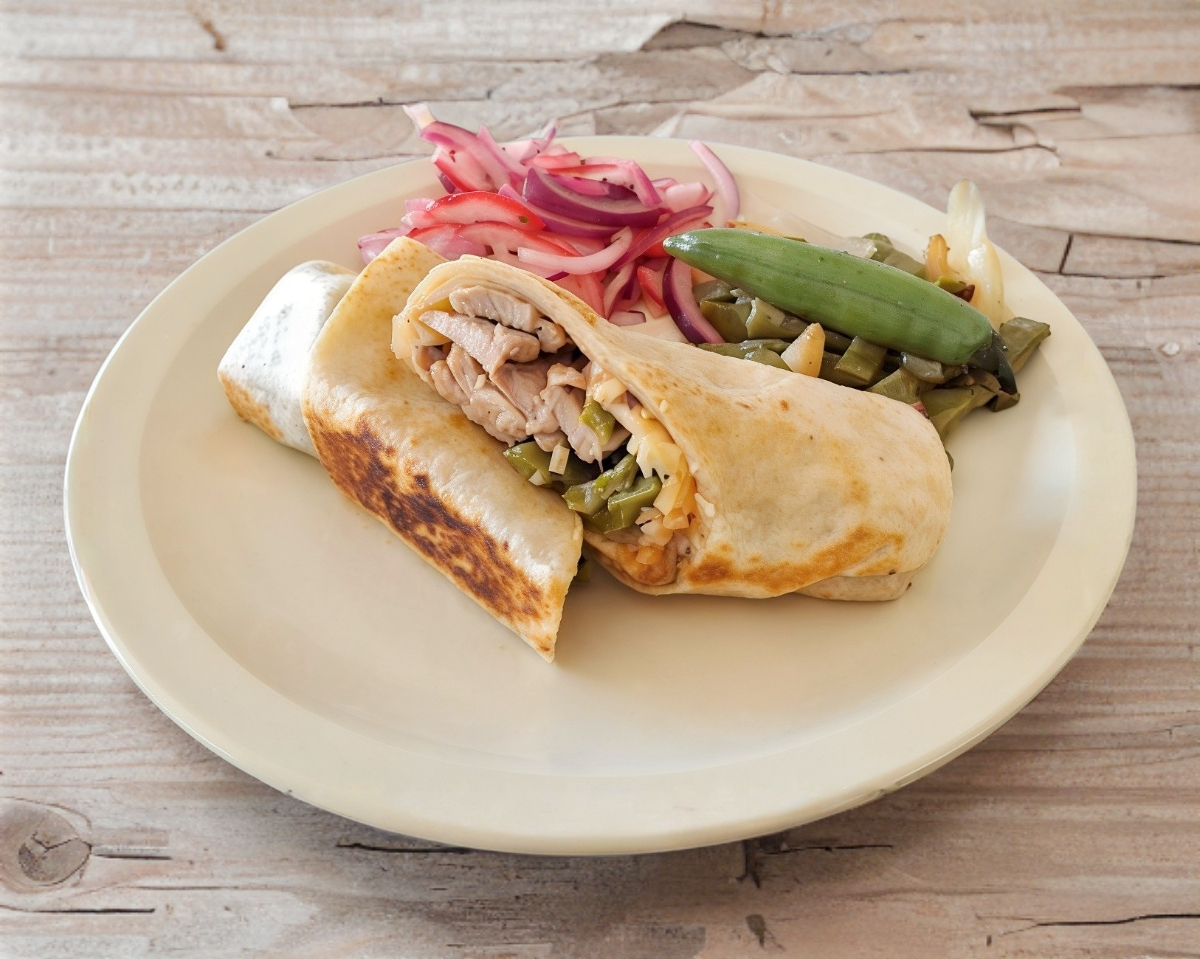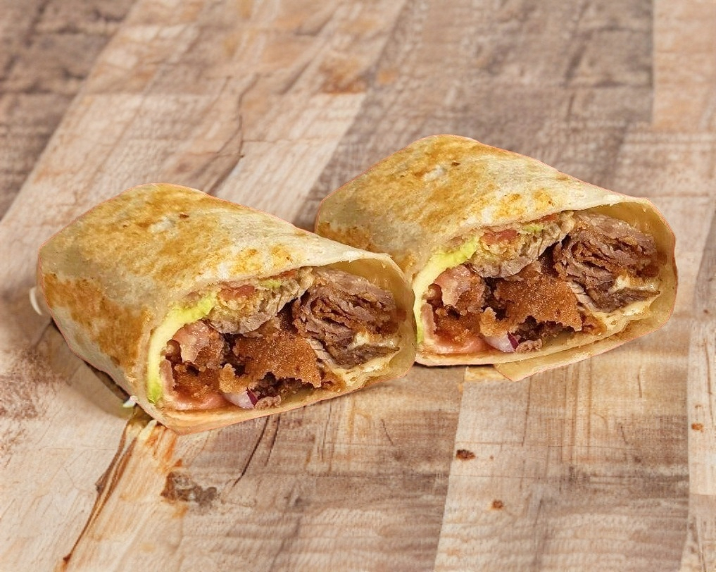 burrito con alambre y queso gratinado con su complemento y salsa especial