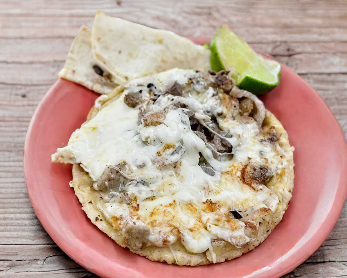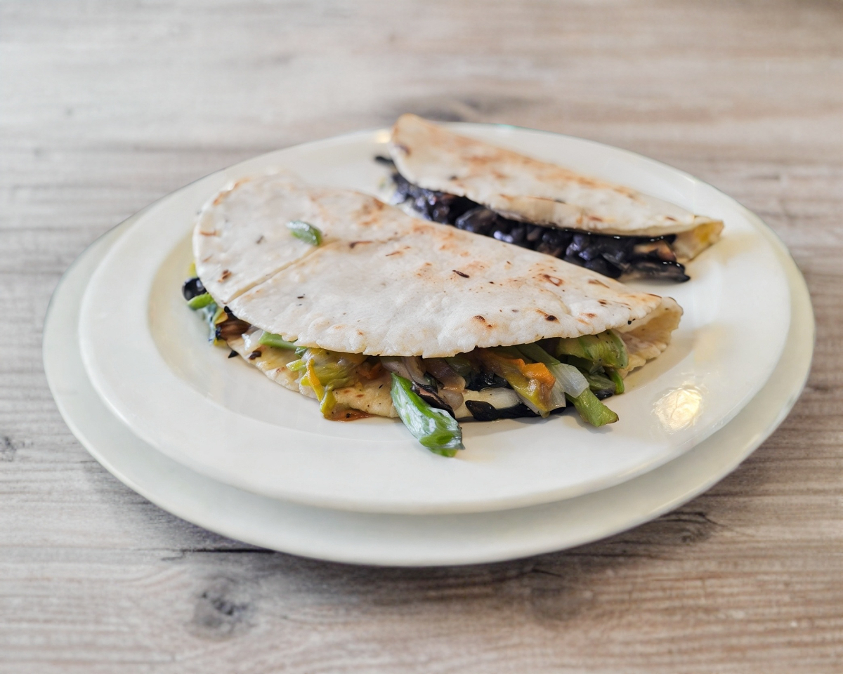 1 quesadilla de queso, 1 quesadilla de alambre, 1 quesadilla de tierritas