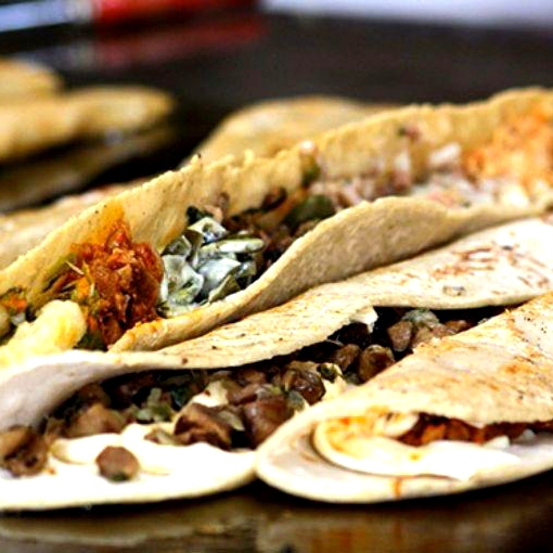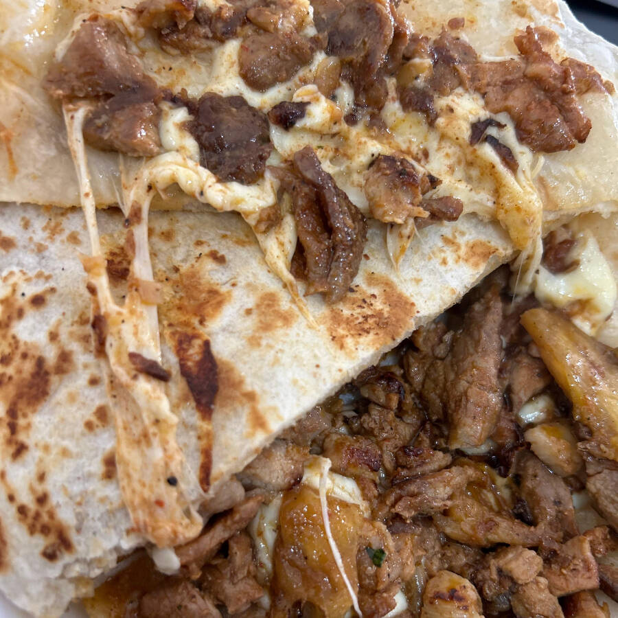 Gringa de pastor 2 tortillas de harina rellena unas deliciosas capas de queso fundido con pastor y piña