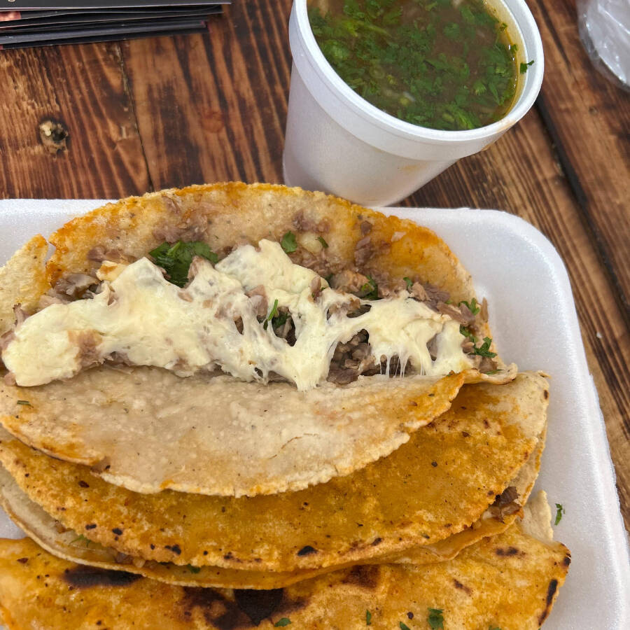 Ricas quesabirrias, llevan queso fundido incluye un delicioso consome de birria