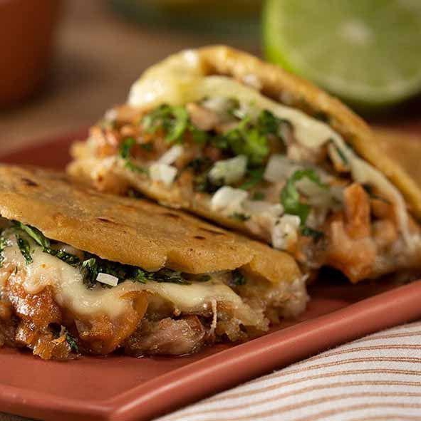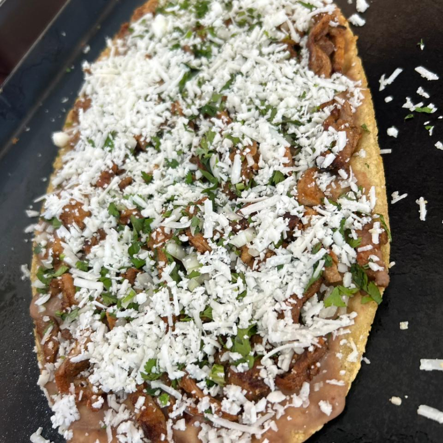 Deliciosa preparación, tortilla hecha a mano, con una capa de frijol con guisado de tinga de pollo, lechuga y queso rallado, con un sabor auténtico que nos caracteriza