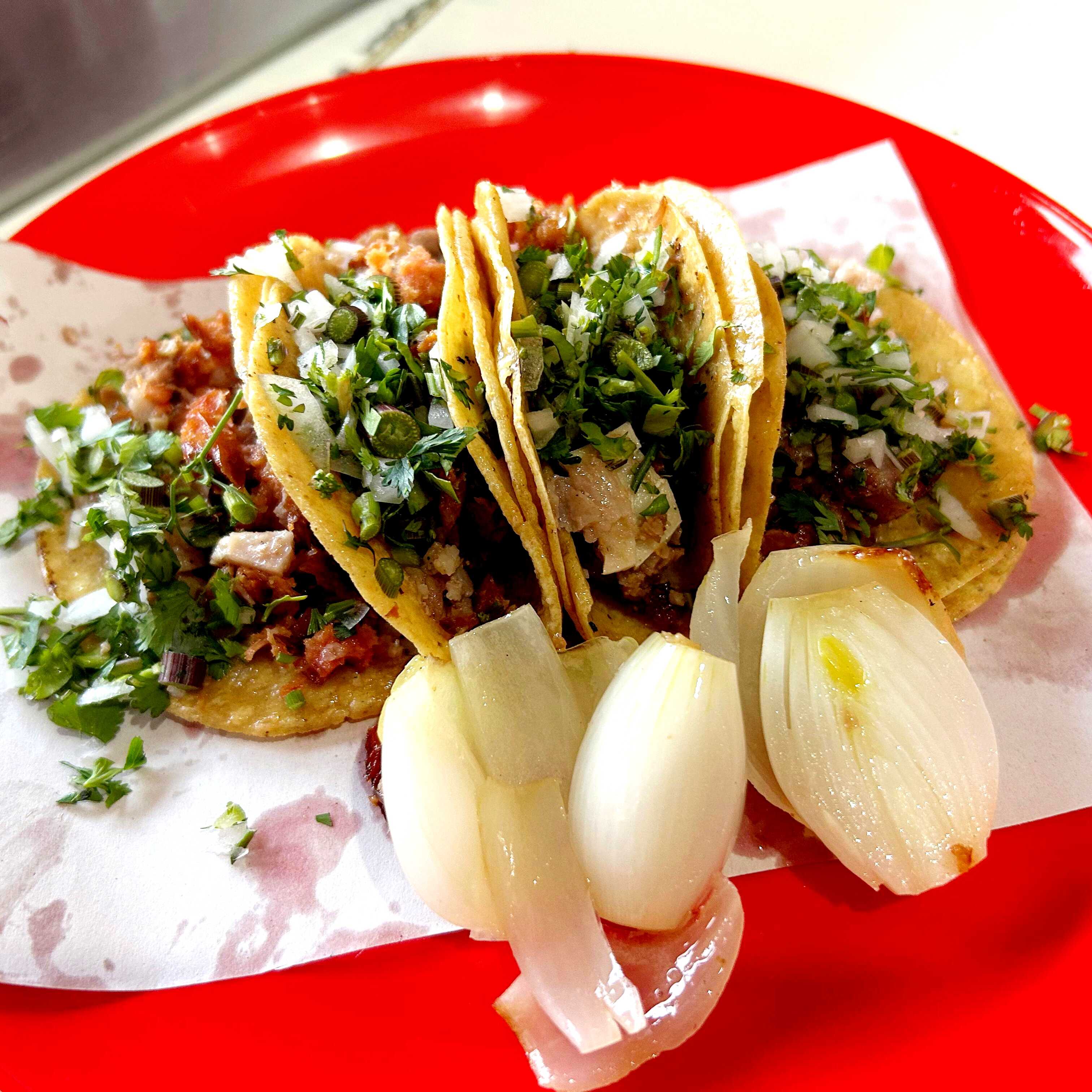 Ricos tacos acompañados con cebolla cambray
