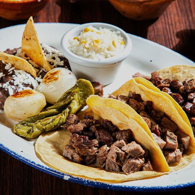 Tortillas de maíz acompañadas de arrachera marinada con un sabor único .Orden de 3 .