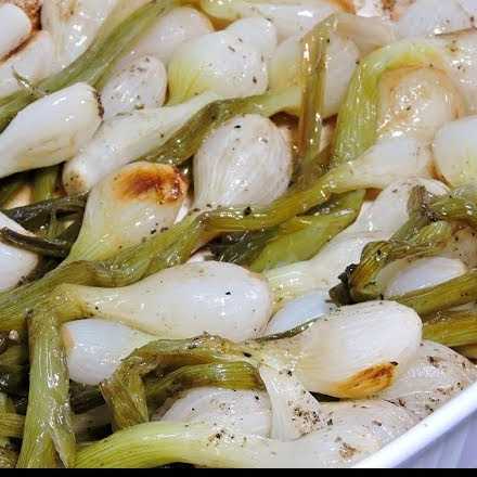Porción de cebollitas asadas con un sabor único