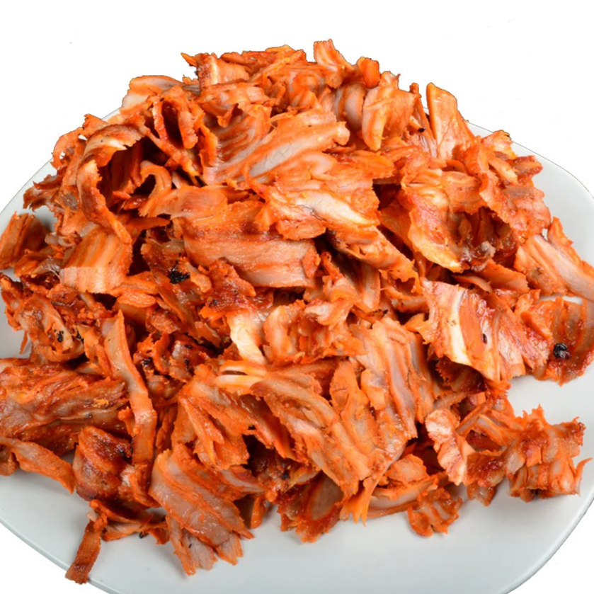 1 Kilo de pastor con nuestra receta secreta, acompañado de tortillas de maíz, cebolla, cilantro y piña