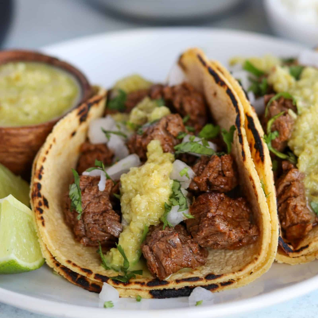tortilla de maíz acompañada con deliciosa carne de bistec
