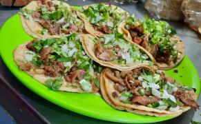 20 Tacos de suadero, longaniza, cabeza, birria, enchilada y pastor, 1 refresco de 2 litros, salsas verde, roja y guarniciones.