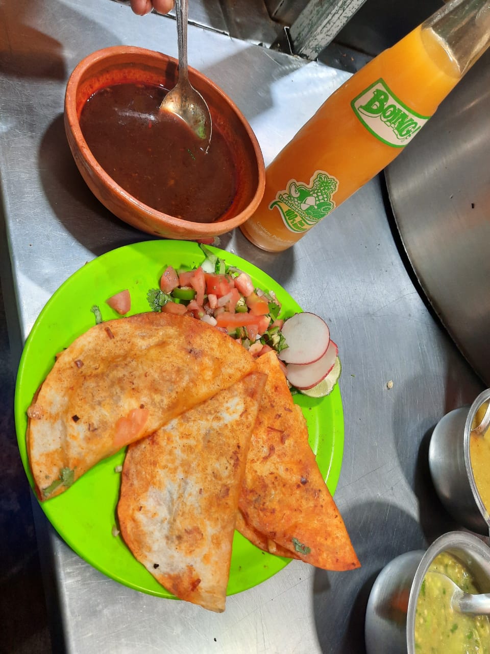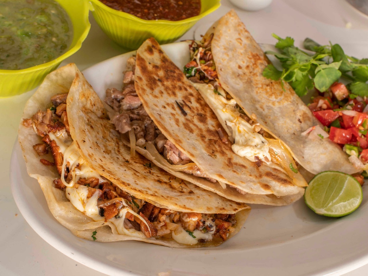 Elige 3 quesadillas de tortilla de harina, queso Oaxaca y el ingrediente de tu elección.