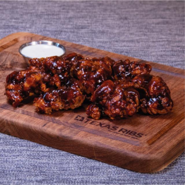 Crujientes trocitos de pechuga de pollo bañados con Buffalo Wing Sauce o con la salsa BBQ que se te antoje. 250 g. Acompañados con aderezo Blue Cheese