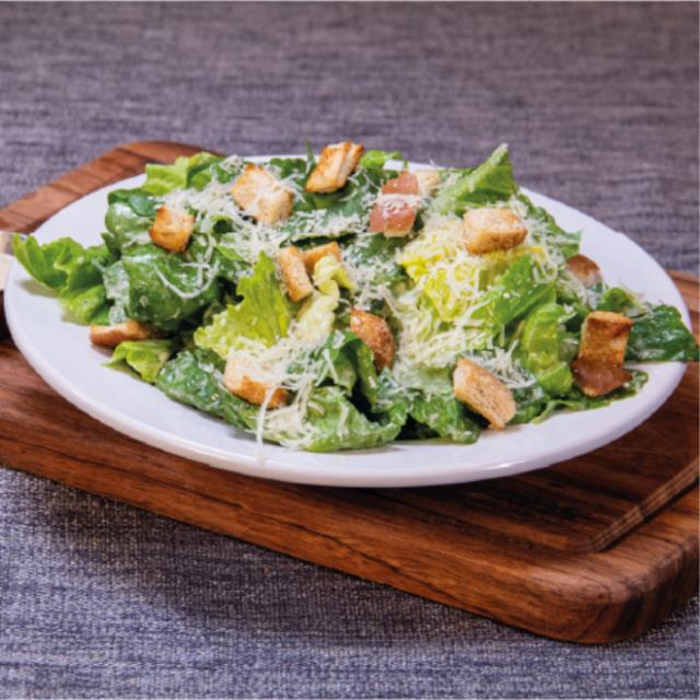 La tradicional ensalada con lechuga orejona, nuestro aderezo César especial, parmesano y crutones.