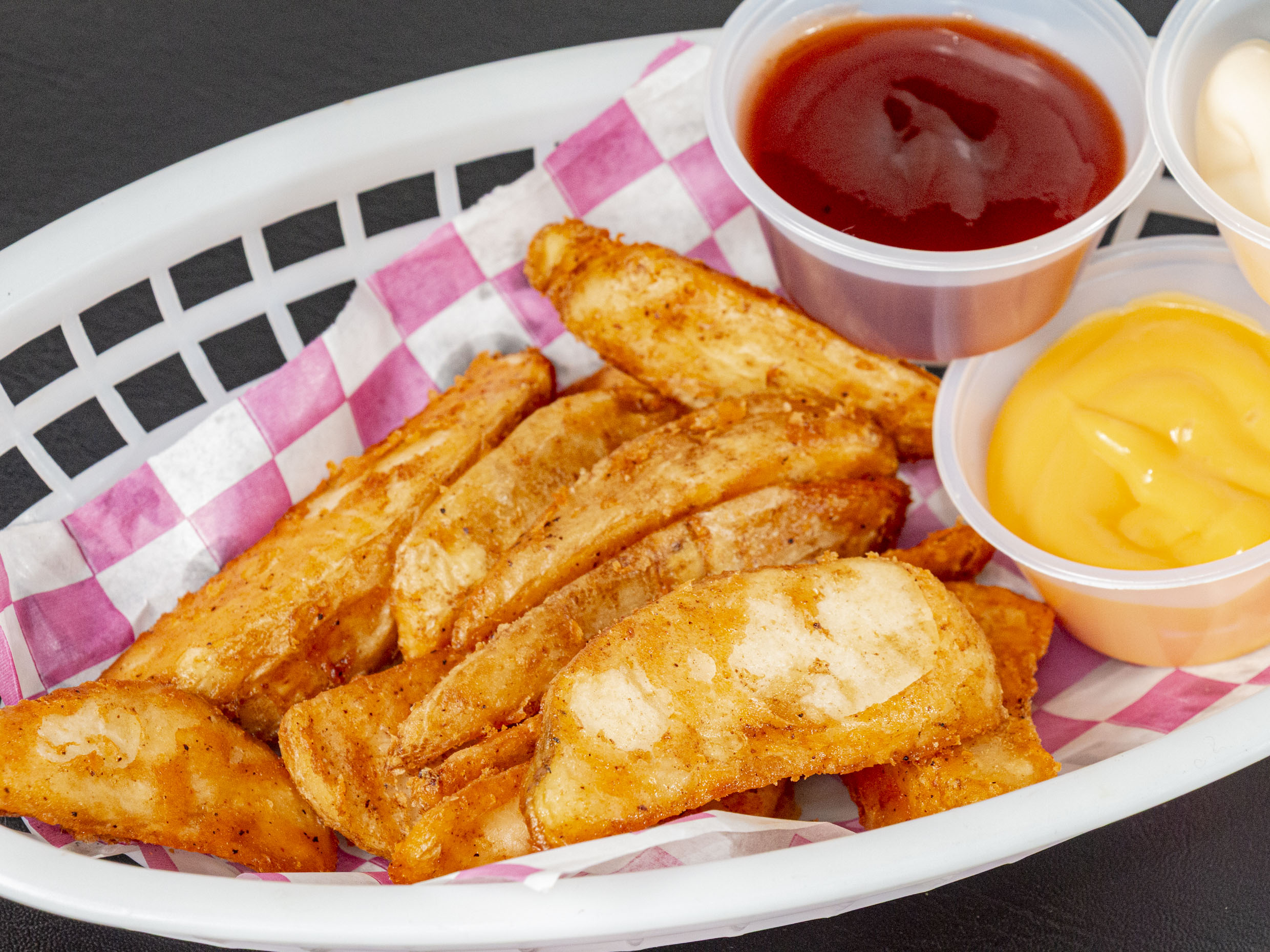 Deliciosas papas horneadas y condimentadas con una exploción de sabores, acompañadas de 2oz de queso amarillo derretido (en envase aparte)