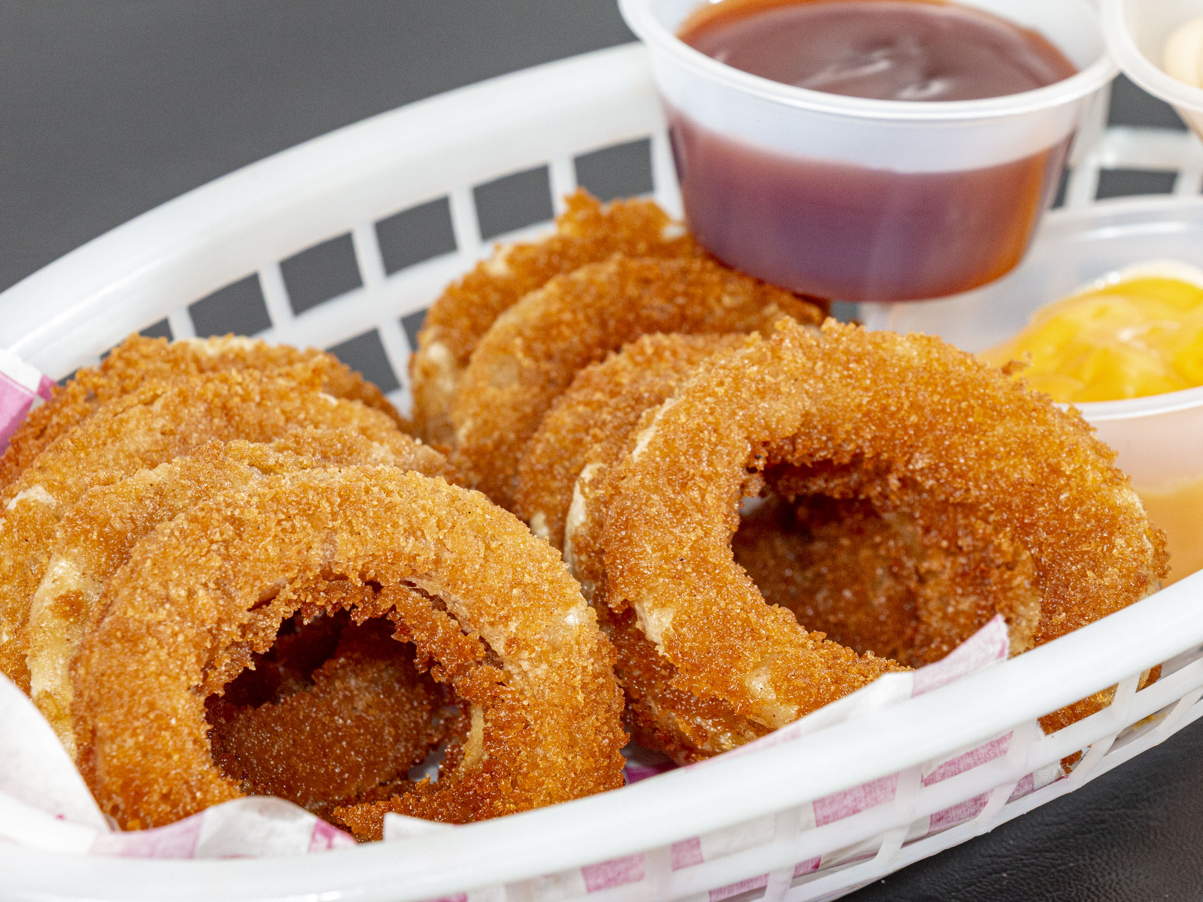 11 aros grandes y crujientes con su queso amarillo líquido y aderezos