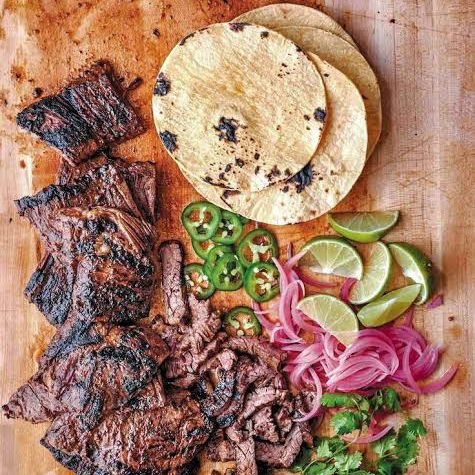 Deliciosa arrachera de res previamente marinada y servida con doble tortilla (tortilla grande)