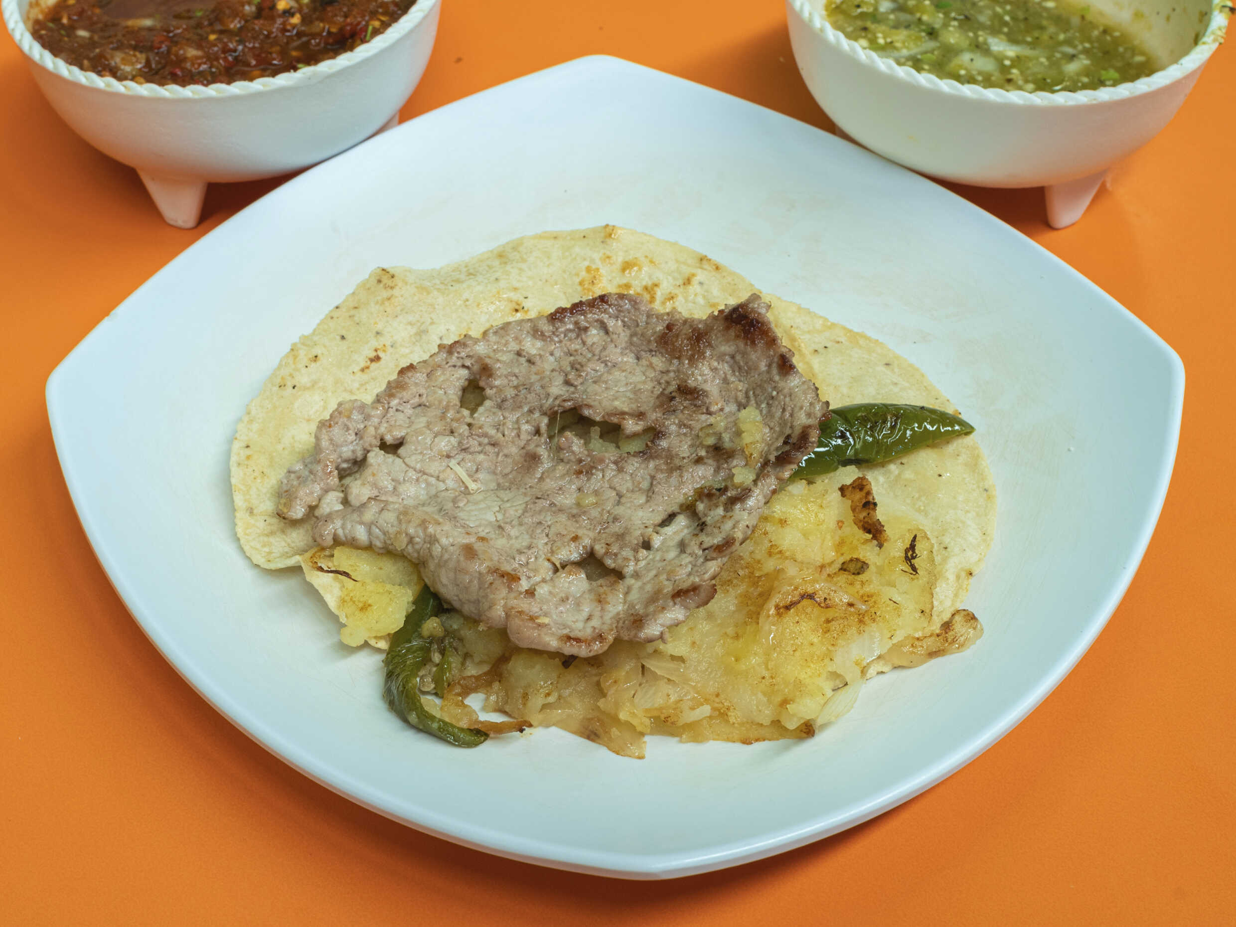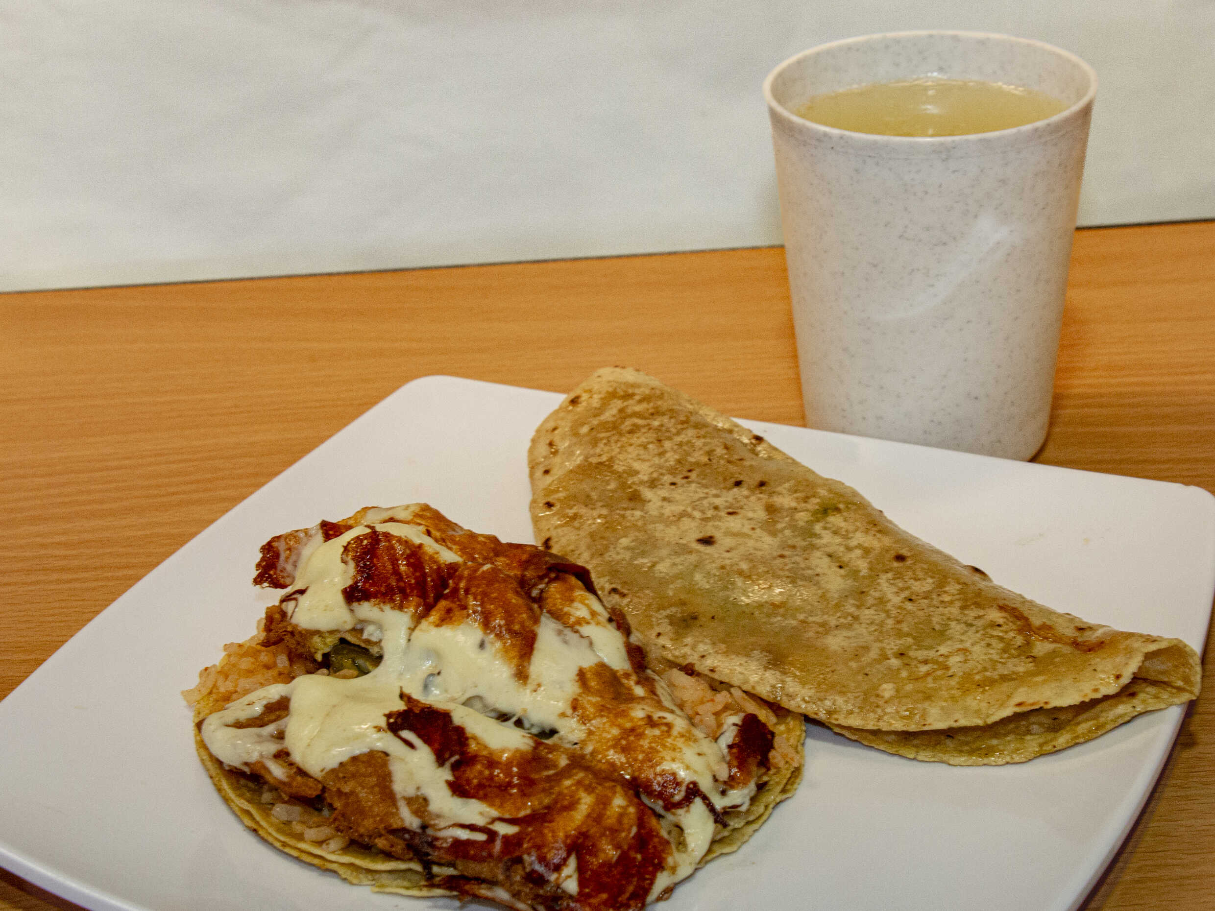 1 taco de Chile relleno, 1 quesadilla y un vaso de agua