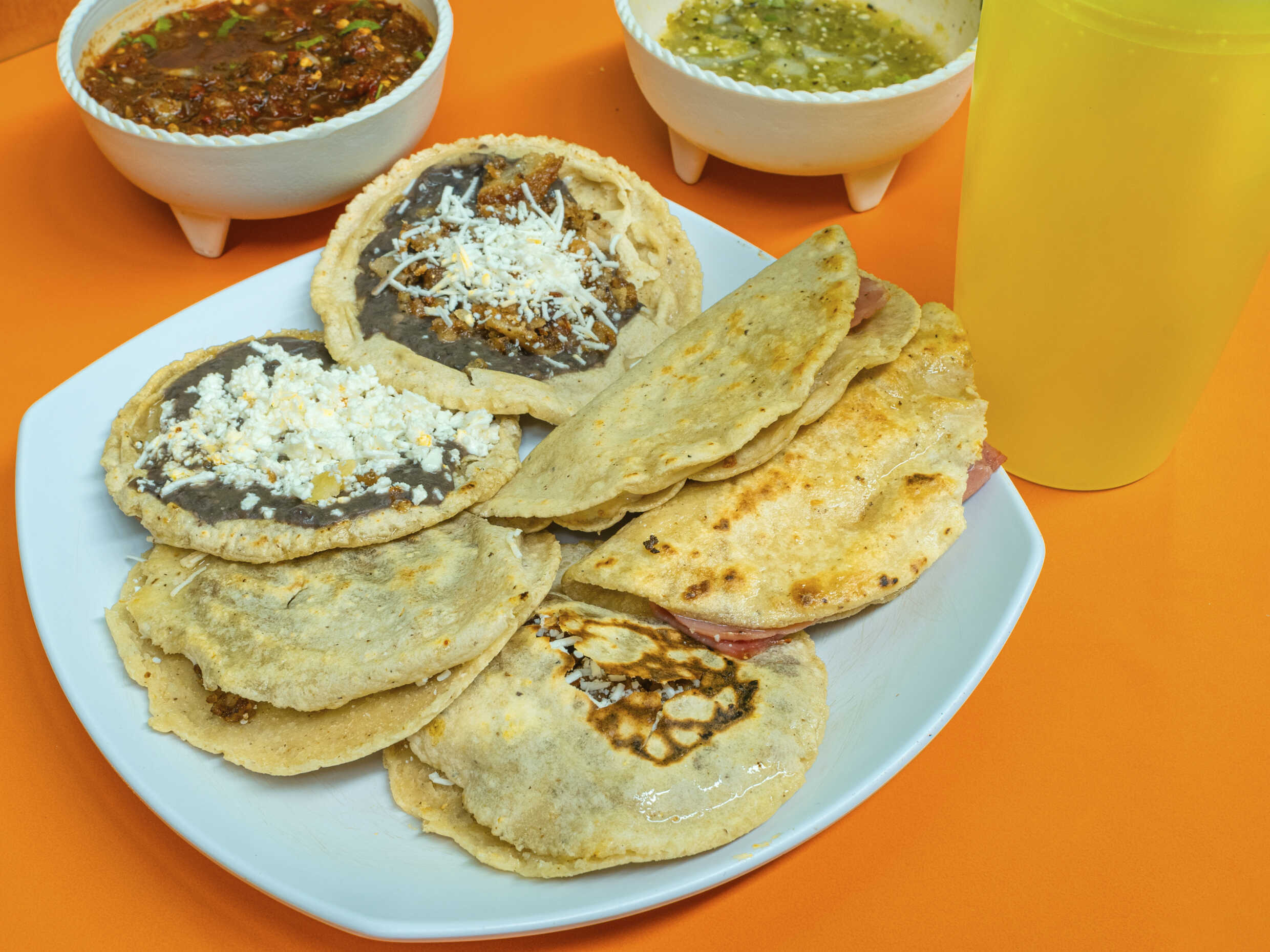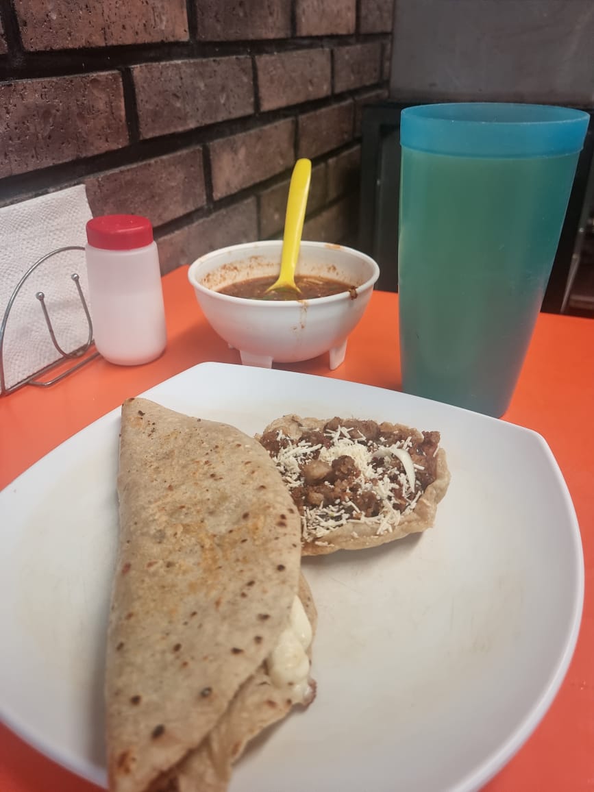 Dos gorditas de tierritas, dos tulancingueñas, 2 Sopes 1 vaso de agua