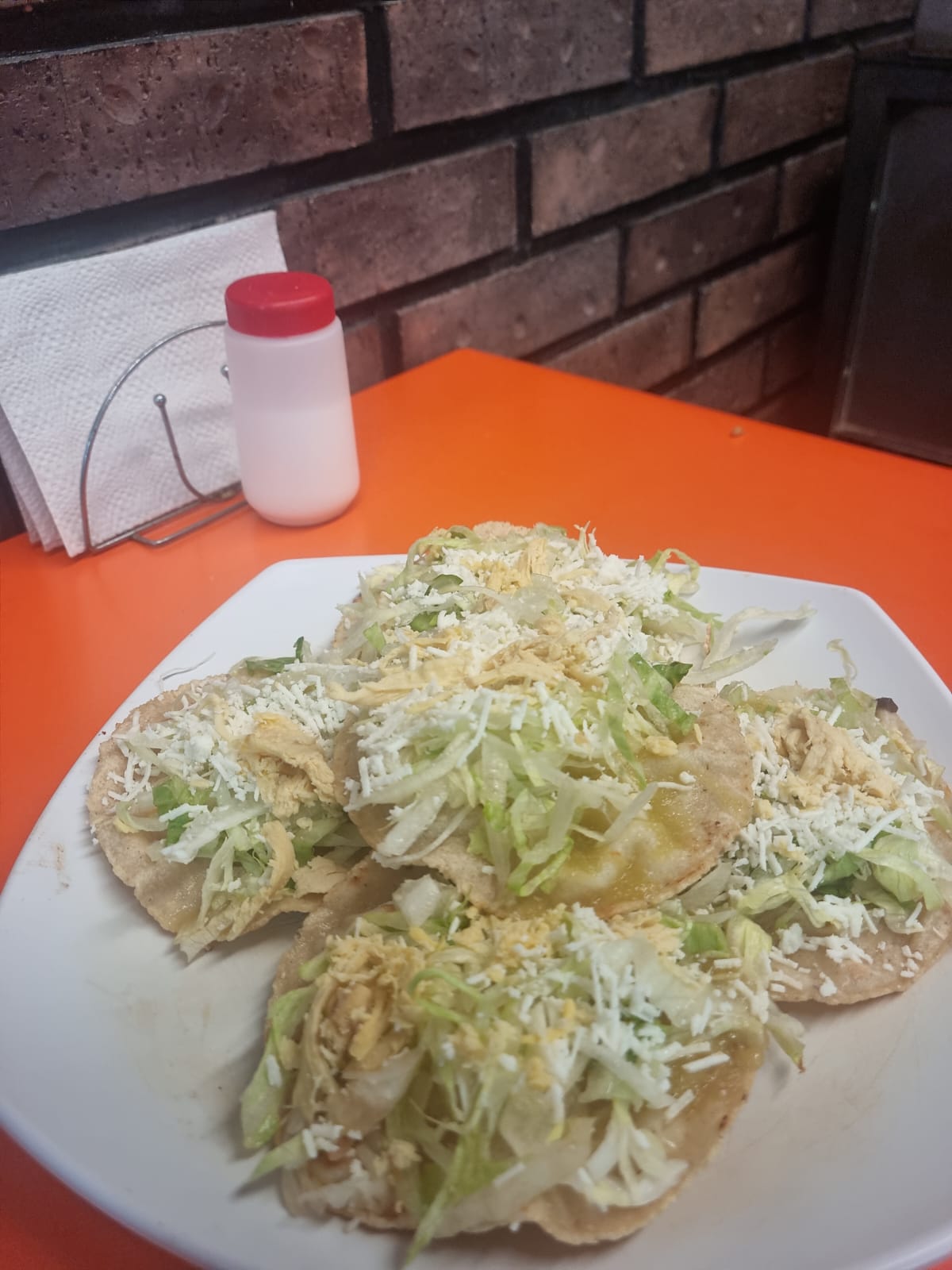 4 piezas, en salsa verde acompañadas con queso, crema, lechuga, cilantro, rábano y cebolla