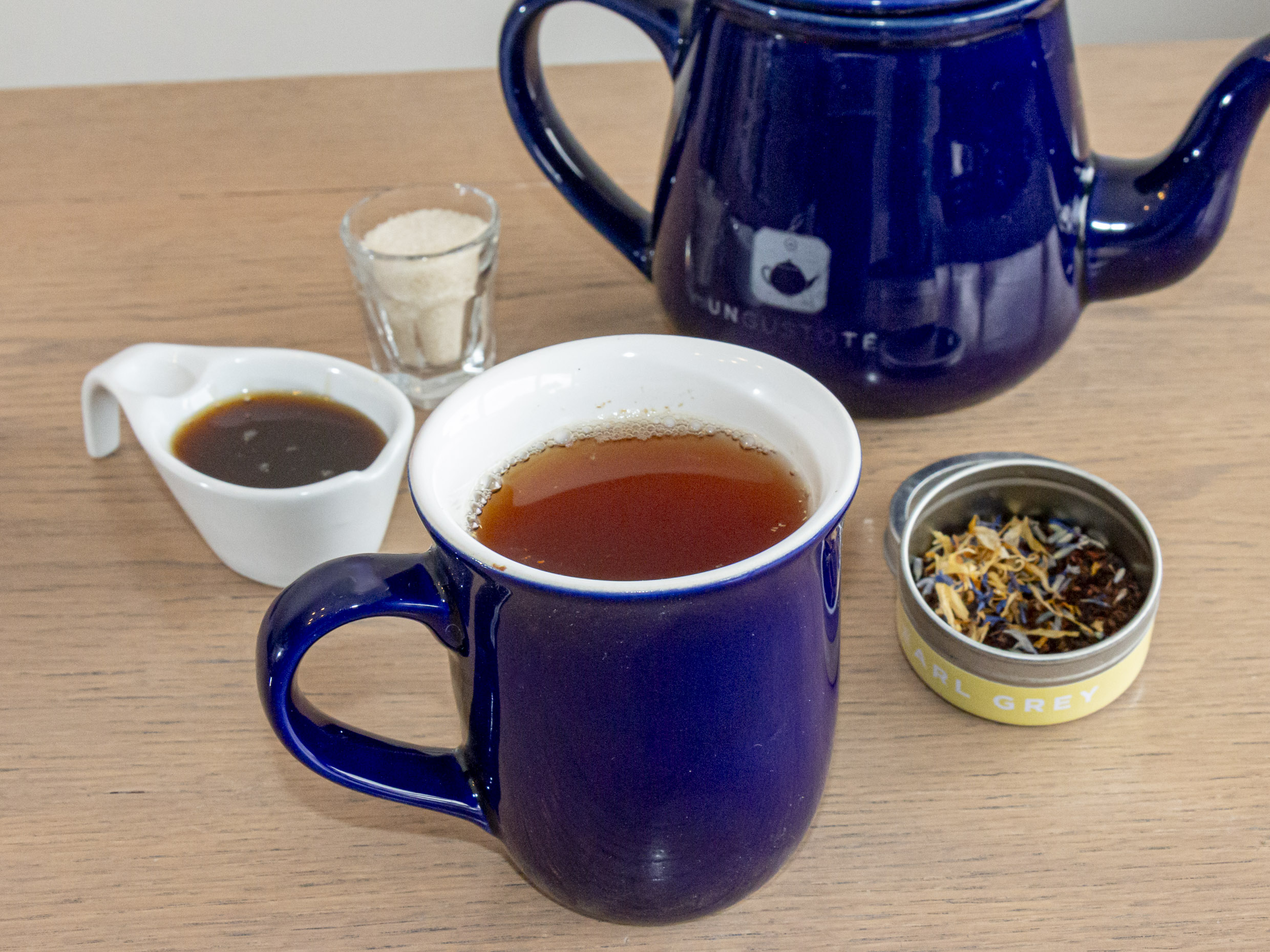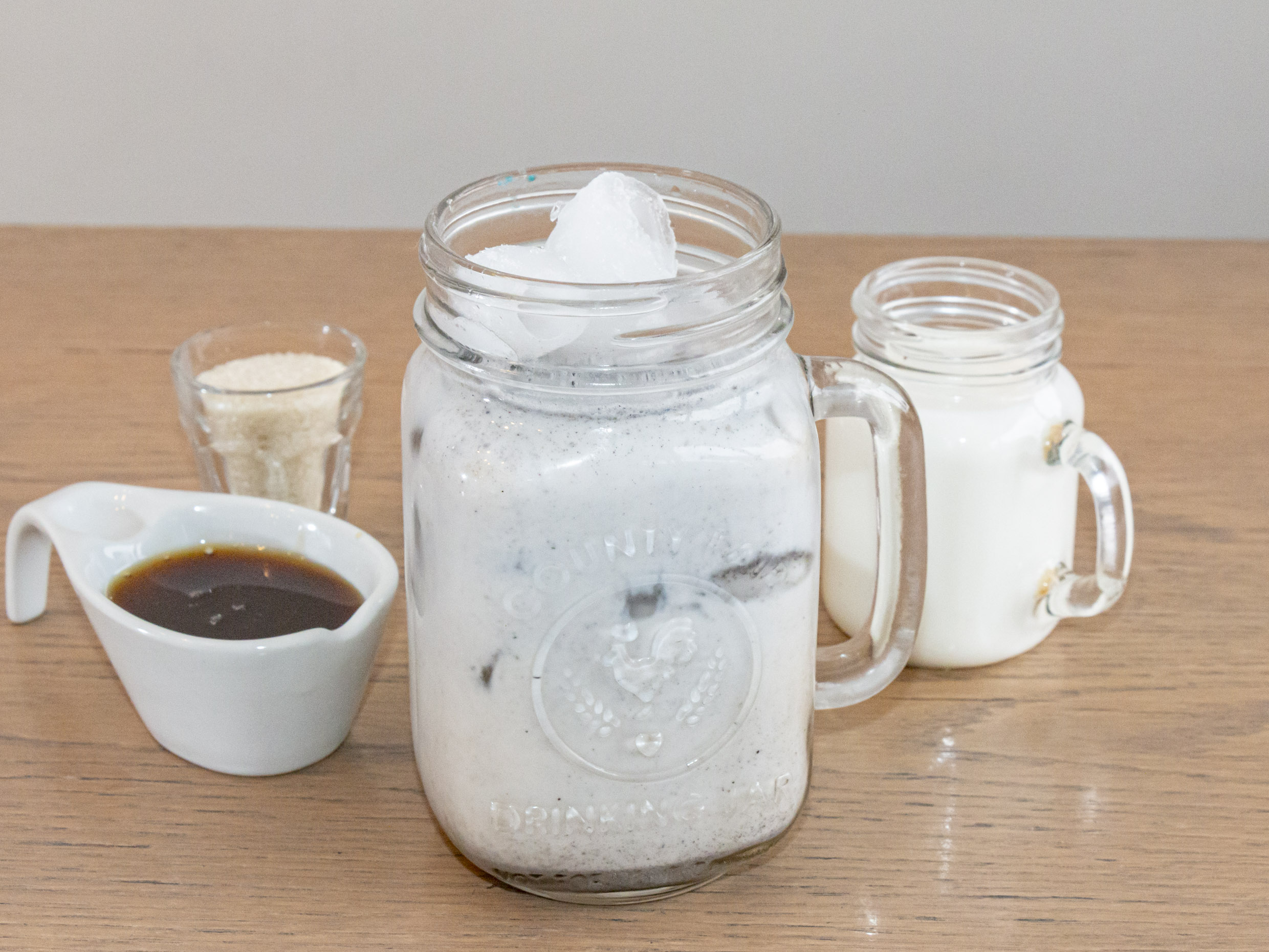 Latte a base de ajonjolí negro pulverizado con leche y endulzante a elegir.