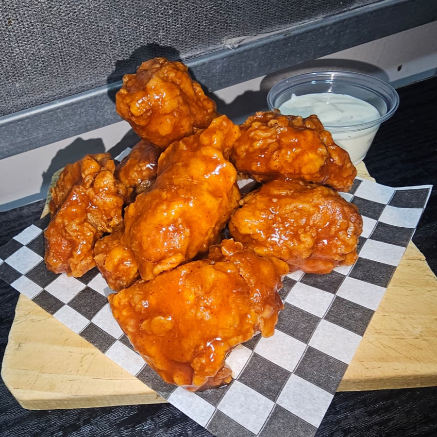 Una cama de lechuga con boneless en la salsa de tu elección y aderezo ranch de la casa.