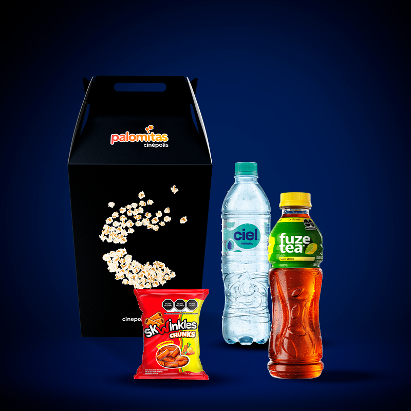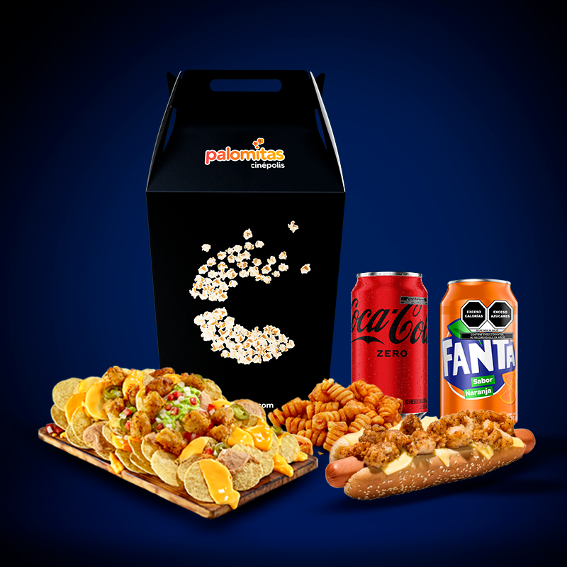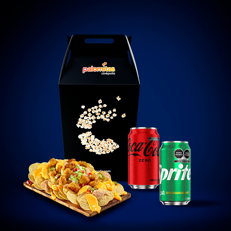 1 Palomitas Cinépolis® P/Llevar + 2 Bebidas de la familia Coca-Cola® + 1 Nachos VIP Cinépolis® a elegir.