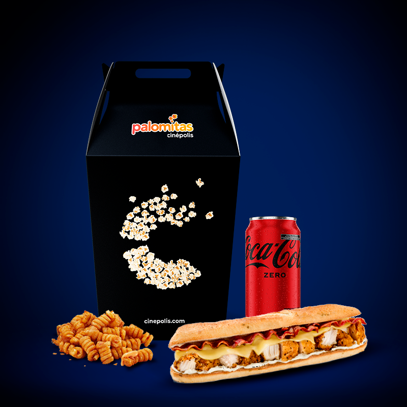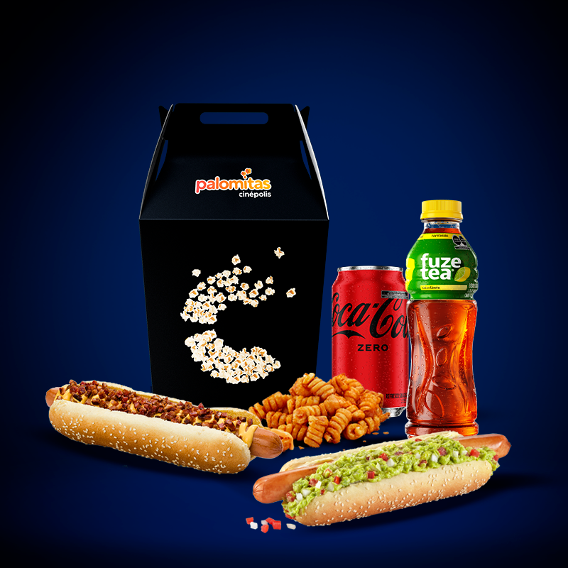 1 Palomitas Cinépolis® P/Llevar + 1 Bebida de la familia Coca-Cola® + 1 Hot Dog Jumbo Cinépolis® con papas twister.
