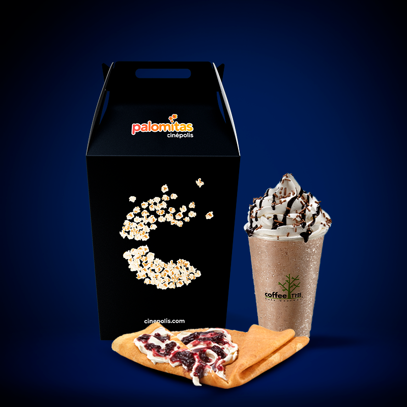 1 Palomitas Cinépolis® P/Llevar + 1 Frappé Grande + 1 Crepa de 1 o 2 ingredientes.