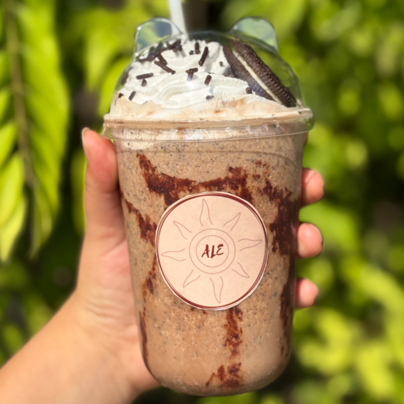 Frappé de galleta Oreo, acompañado de crema batida y chispas de chocolate. Tamaño 500ml.