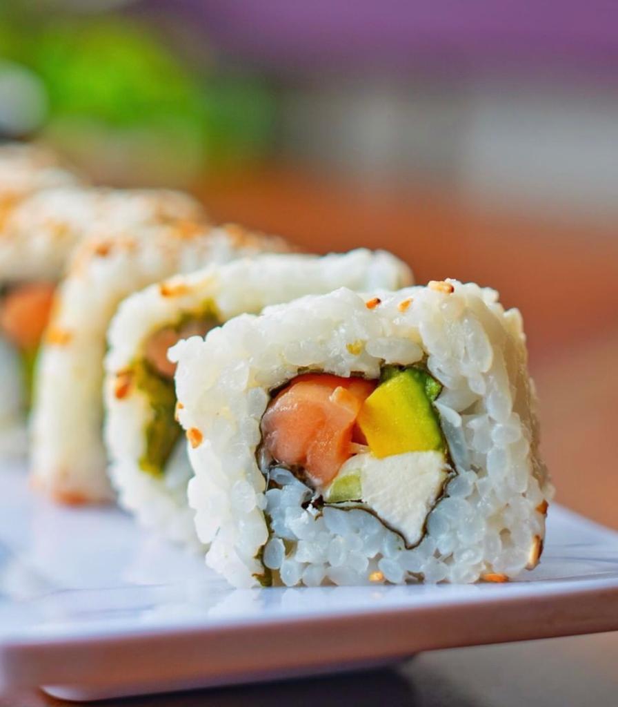 Por dentro con philadelphia, aguacate y surimi. Por fuera con pasta Tampico.