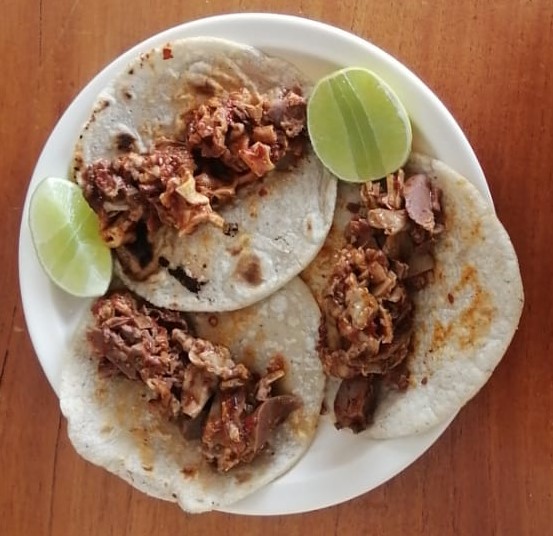 1/4 kg de panza; incluye salsa roja, salsa verde, cebolla, cilantro, limones por aparte y tortillas de maíz hechas a mano.