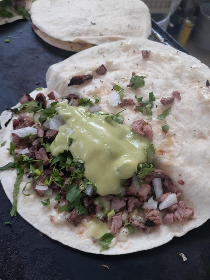 Tortilla de harina artesanal con queso y carne diezmillo asado y carne de pastor de trompo
