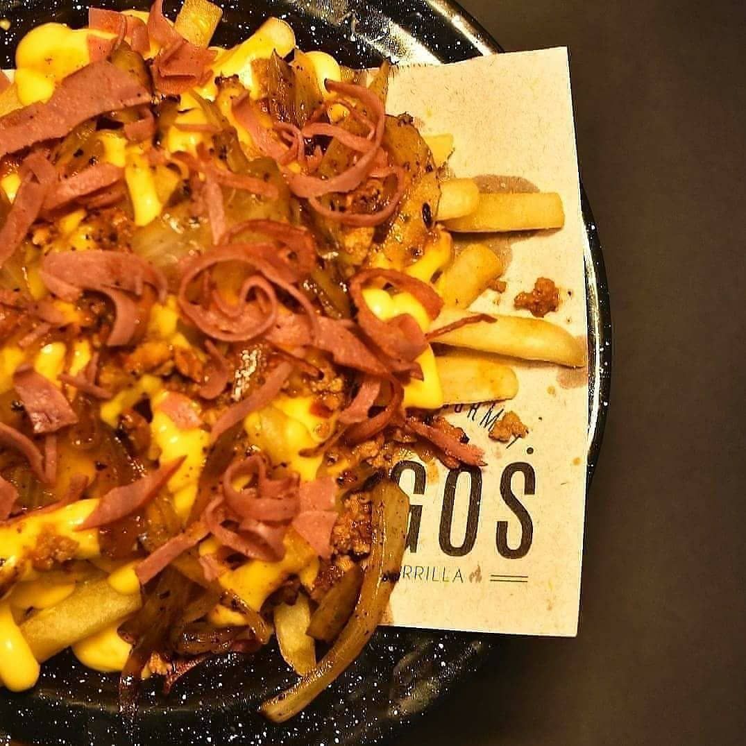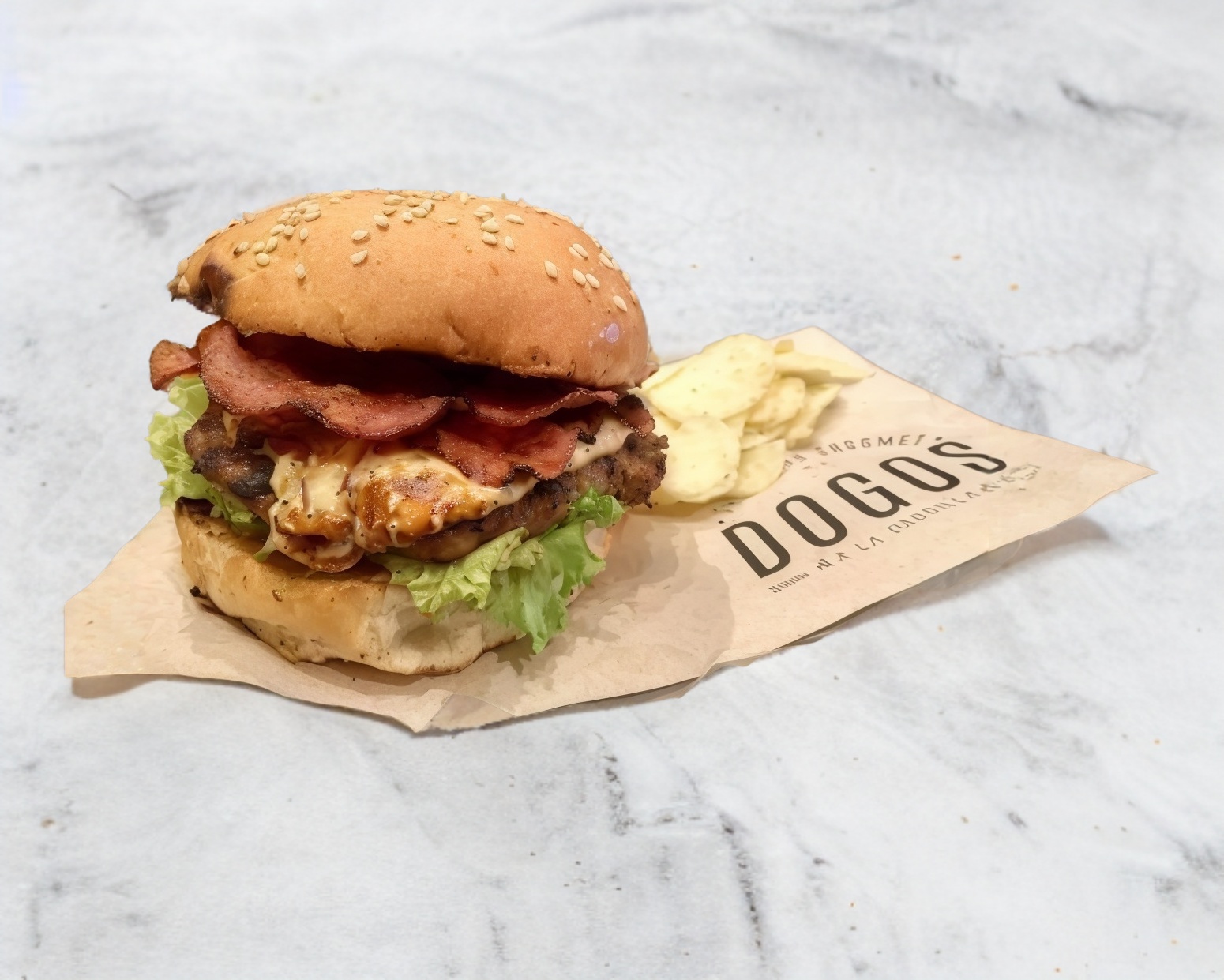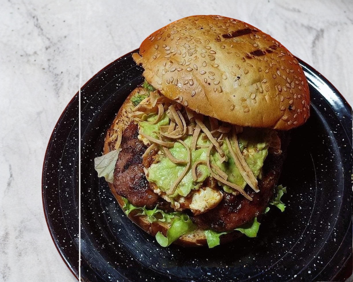 Queso oaxaca, extra tocino y cebollitas a la BBQ.