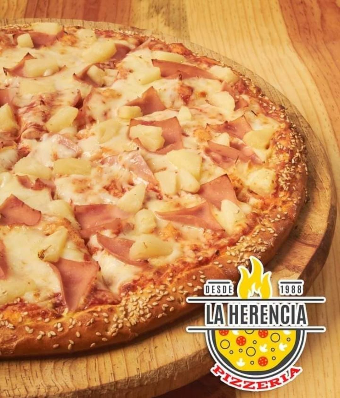 Pizza grande 35 cm, jamón y piña.
