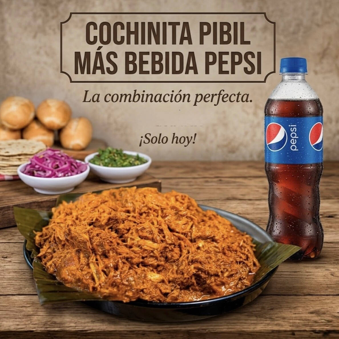 Bebidas*1 + Cohinita Por Medio Kilo*1 complementos salsa tostadas cebolla tortillas y limones