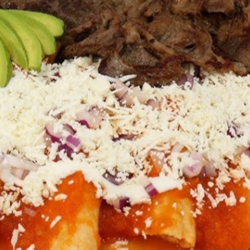 Ricas enchiladas orden de 4 junto a proteina, aguacate, queso y cebolla