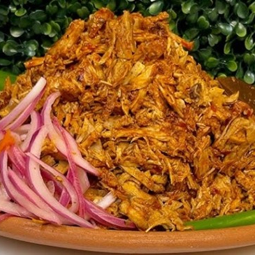 1 Kilo de cochinita, 1/2 de tortillas, cebollitas moradas, variedad de salsas .