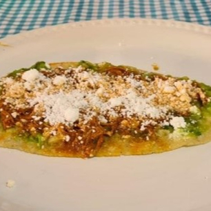 Sope de cochinita, salsa a elegir, queso