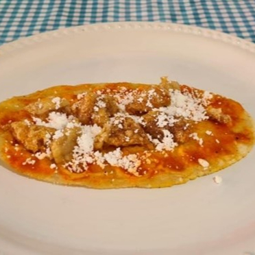 Sope de chicharrón guisado, salsa a elegir, queso