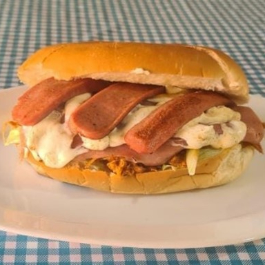 Torta con queso de hebra, jamón y salchicha con proteina a elegir