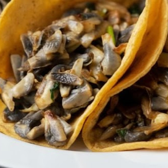 Tortilla echa a mano, frijoles, arroz, Nopales, cebolla, papas, picante a elegir y puedes escojer uno o varios acompañantes. (Una sola tortilla cada taco)