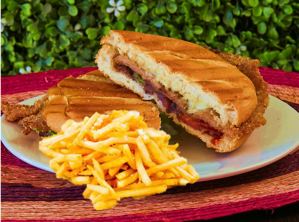 Torta de Milanesa*1 + Papas a la Francesa o Arroz*1 + Fruta del Día*1 + Ensalada de la Casa*1 + Agua del Día o Café de Olla*1