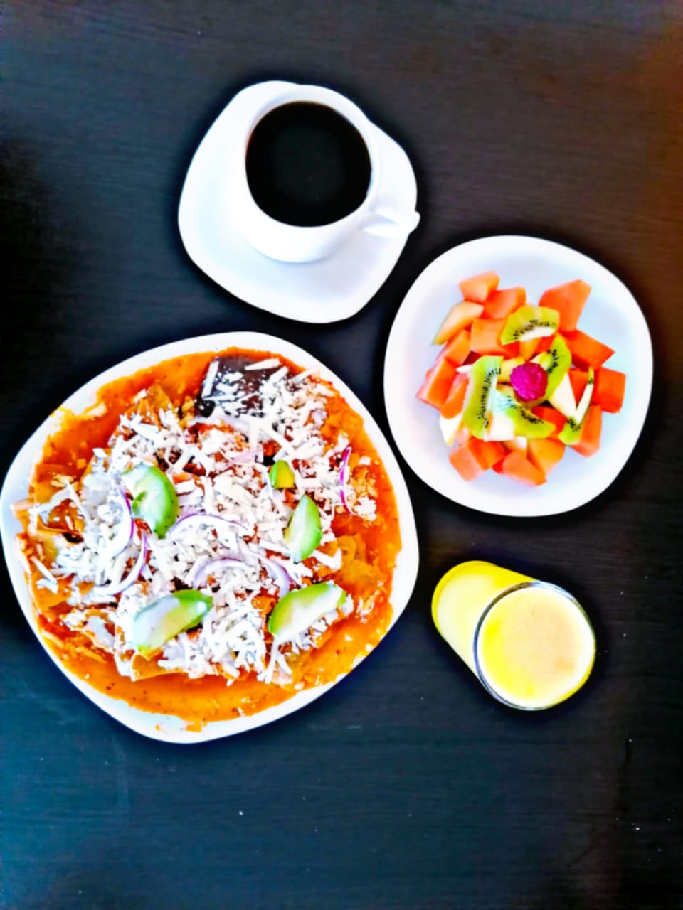 Chilaquiles Rojos*1 + Café de Olla*1 + Fruta*1 + Jugo Natural*1
