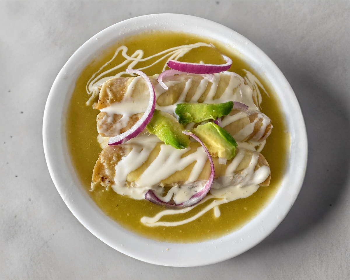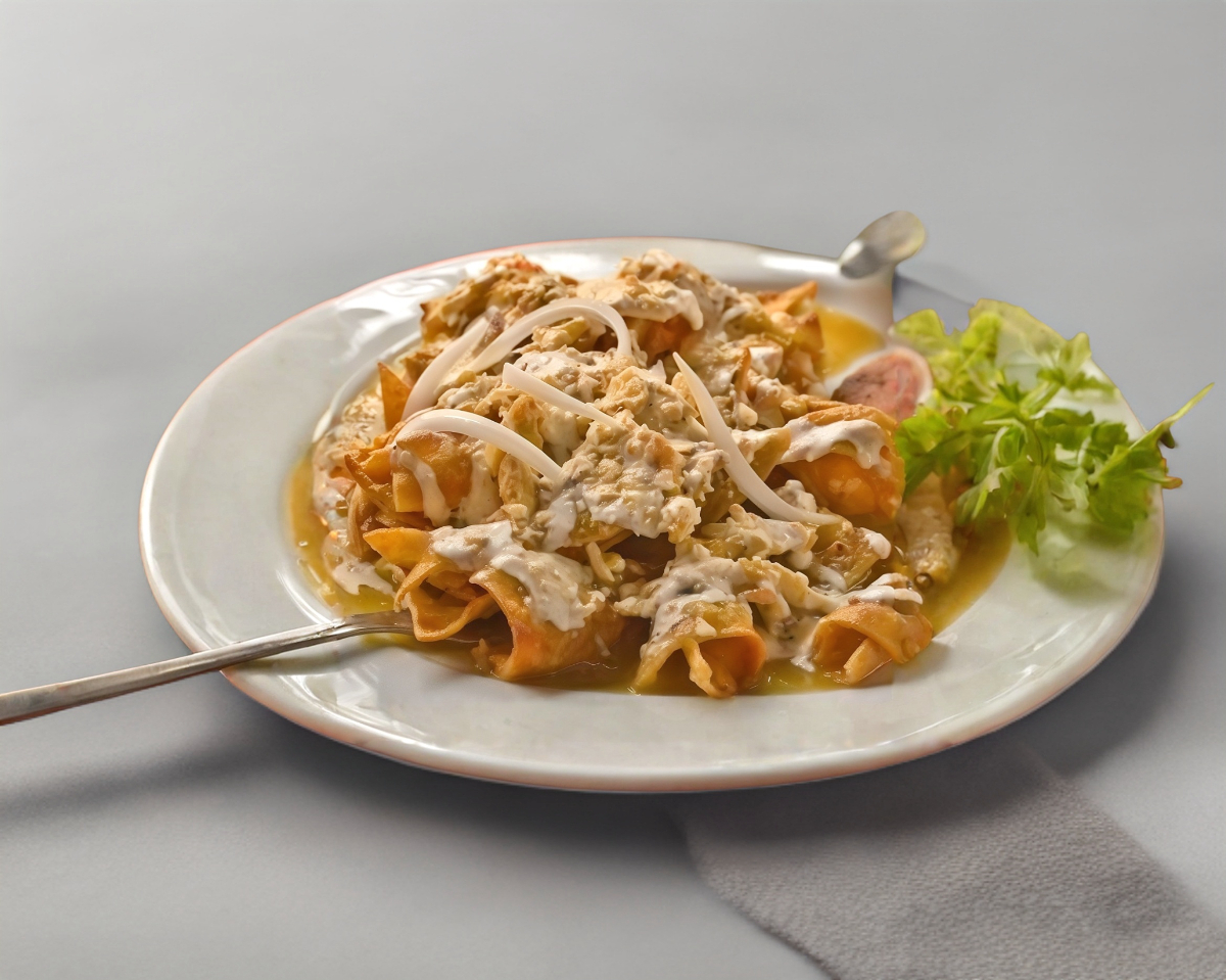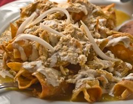 Verdes o rojos con pollo o huevo, queso, crema y cebolla.