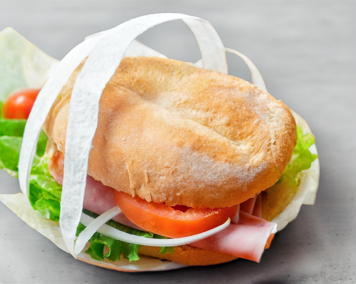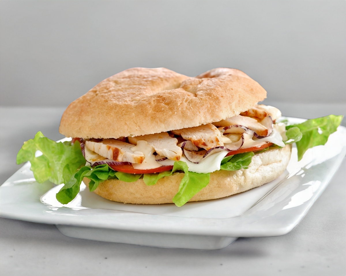 Torta o sándwich de pechuga de pollo a la parrilla.