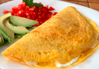 3 Piezas. Con pollo, huevo o chorizo, con queso, crema y cebolla.