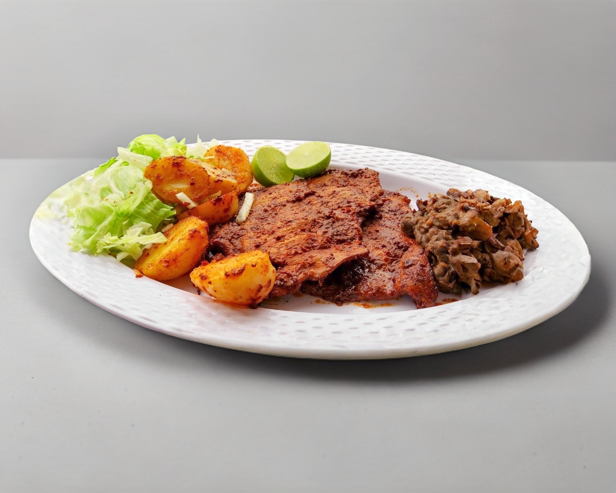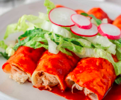 Agua del Día + Postre del Día*1 + Carne Enchilada mas tortillas y ensalada