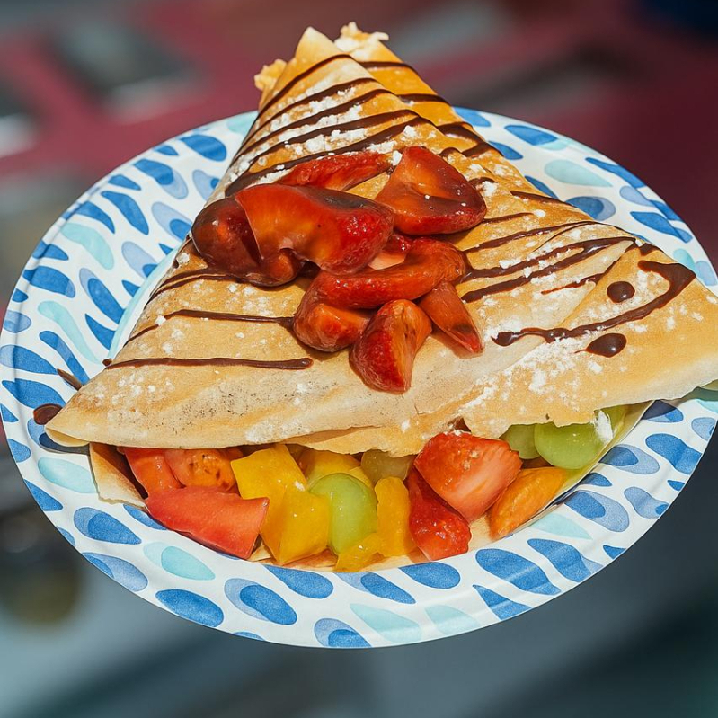 Crepa con nutella y queso philadelphia ,con uva,fresa y durazno