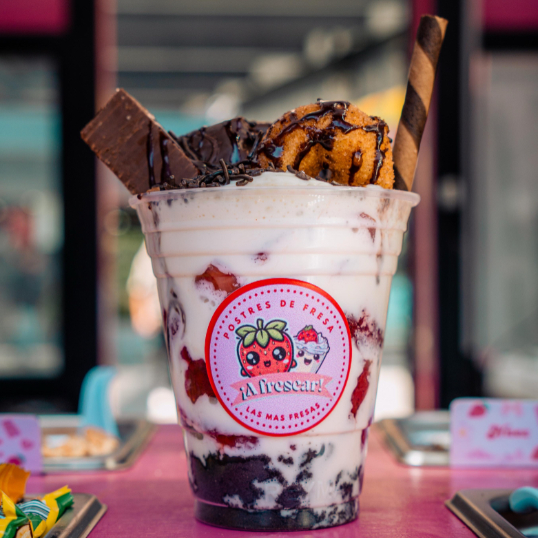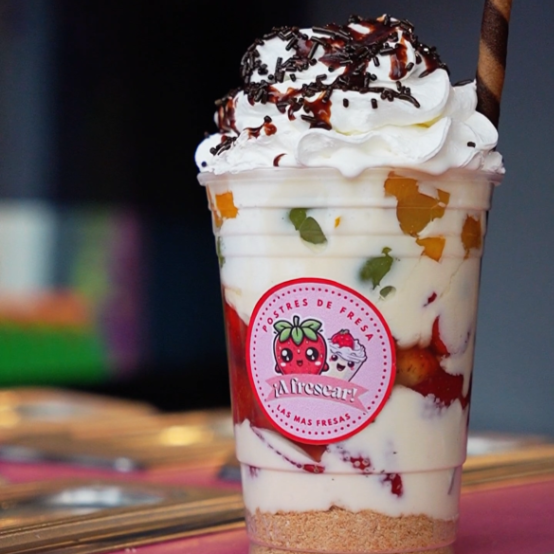 Las fresas con crema mas chocolatosa y monchosa, con mas de 5 toppings, atrevete a probarla