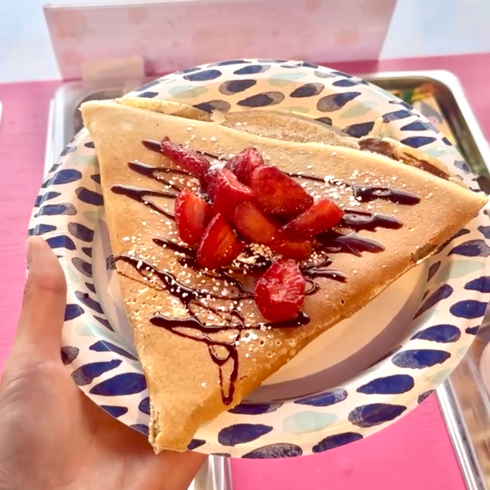 Crujiente por fuera y suave por dentro, calientita y con hasta 2 ingredientes de tu elección, con un toque de fresa y tu jarabe preferido