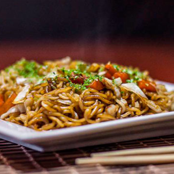 Fideos fritos, servidos con col, zanahoria, además de pimiento, champiñón y arrachera a elegir