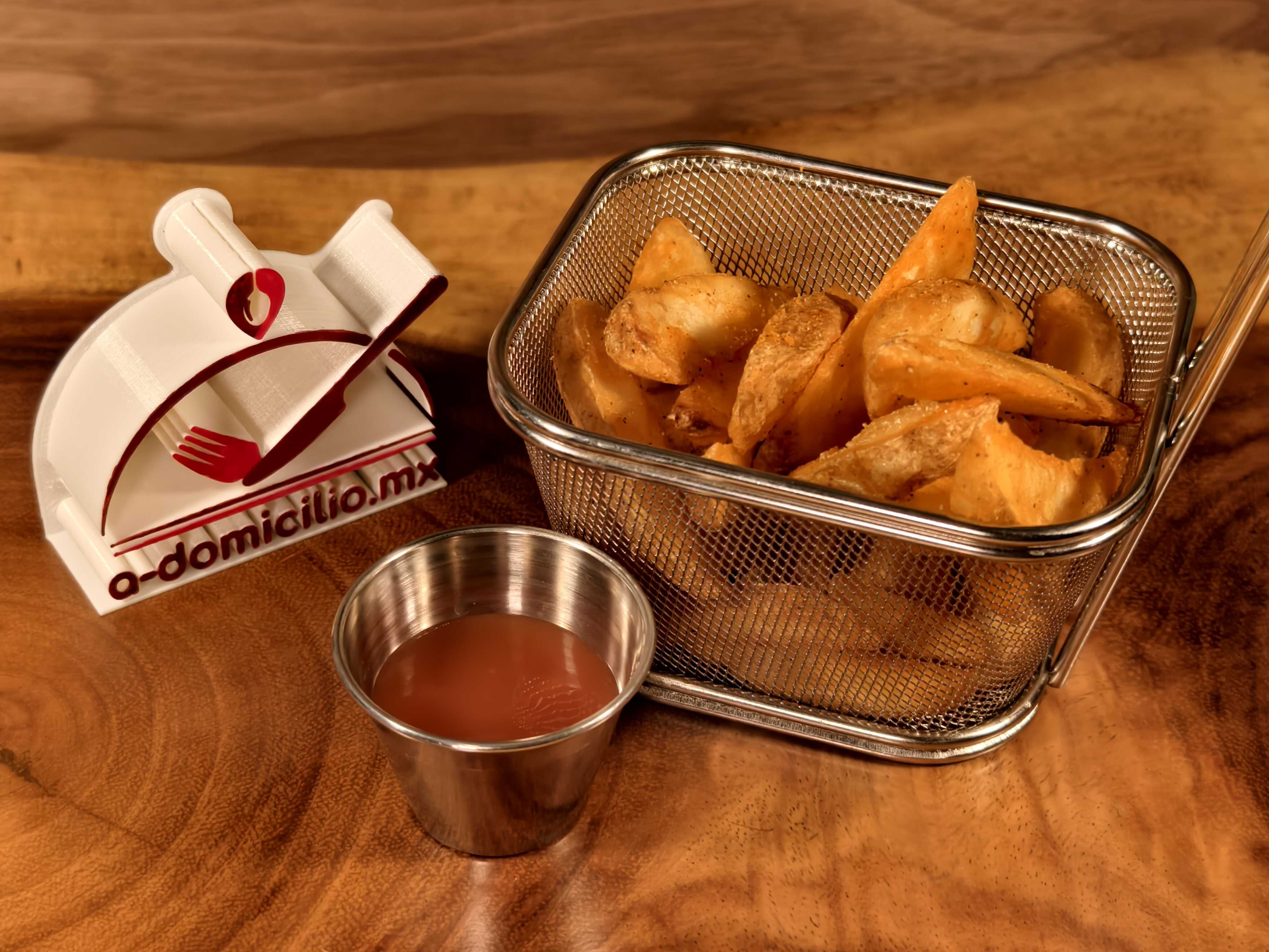 200g de papas a la francesa bañadas en queso americano fundido y trozos de tocino