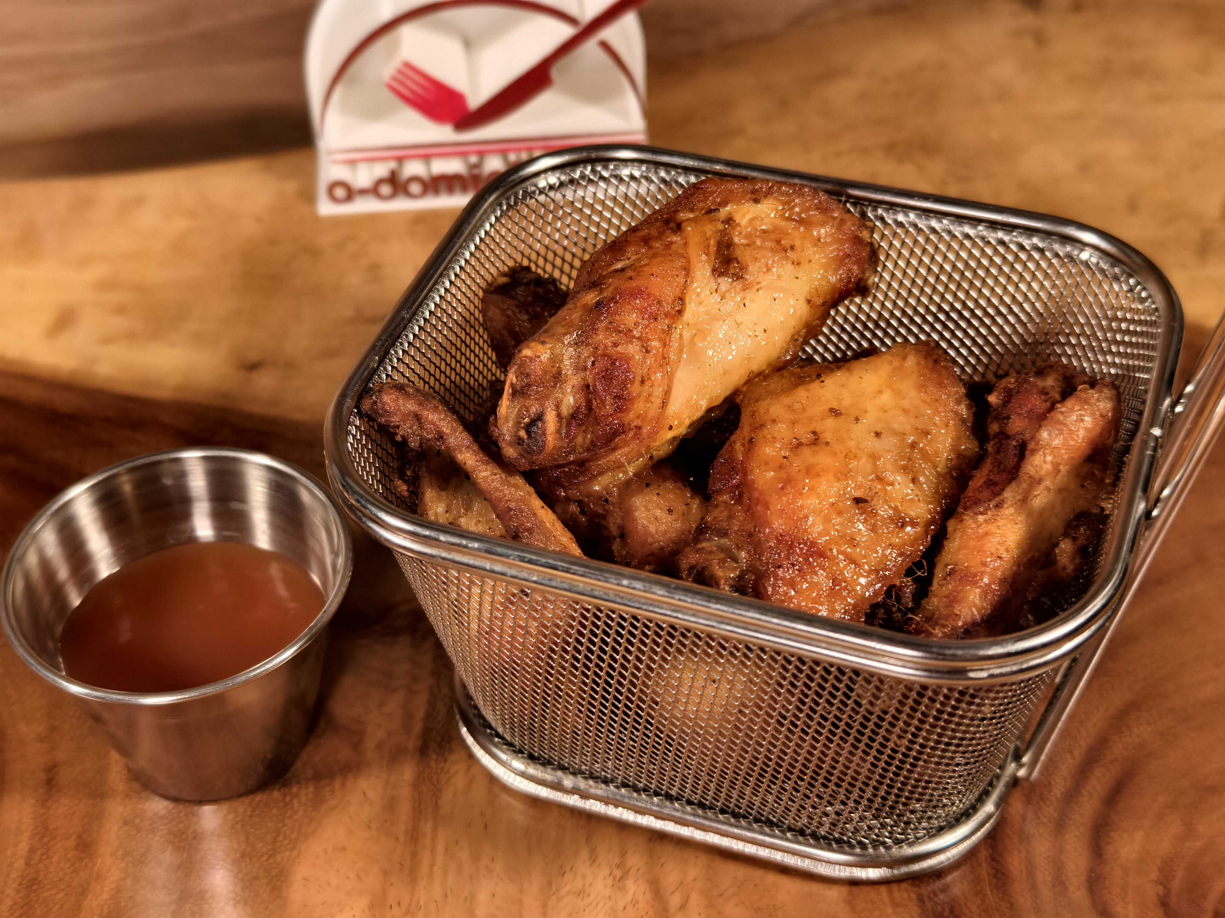 Hamburguesa de pollo empanizado con queso americano, vegetales y aderezos